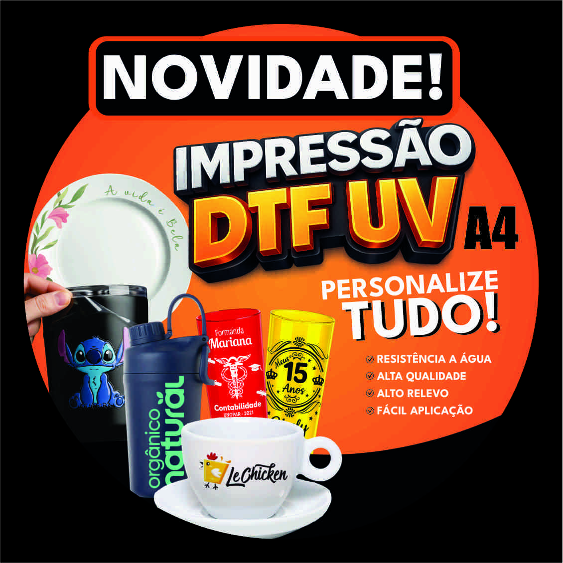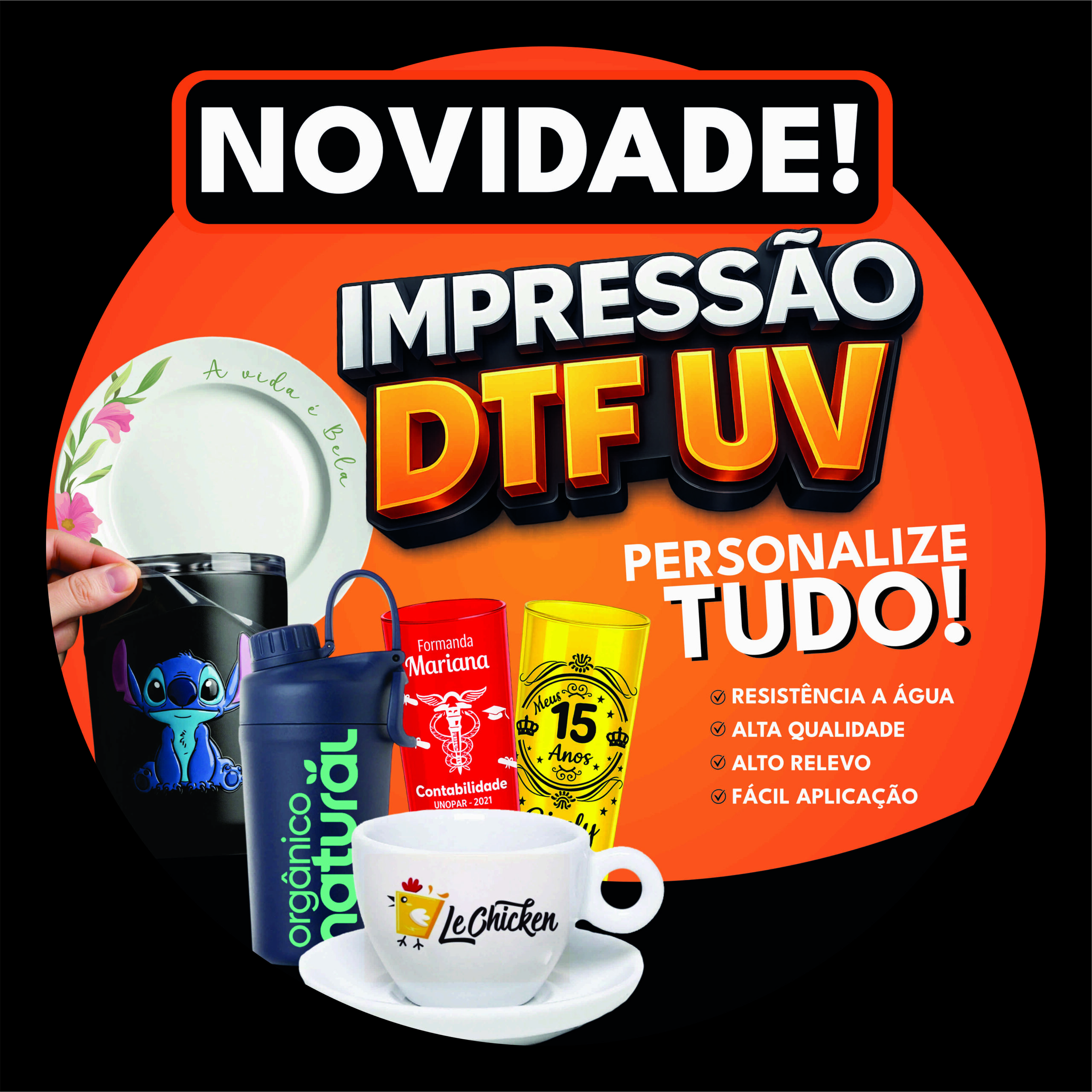 Produzida com tecnologia DTF UV, ela permite transferir estampas com excelente definição, cores vibrantes e ótimo acabamento, agregando valor a produtos personalizados para venda, brindes, lembranças e uso profissional.
